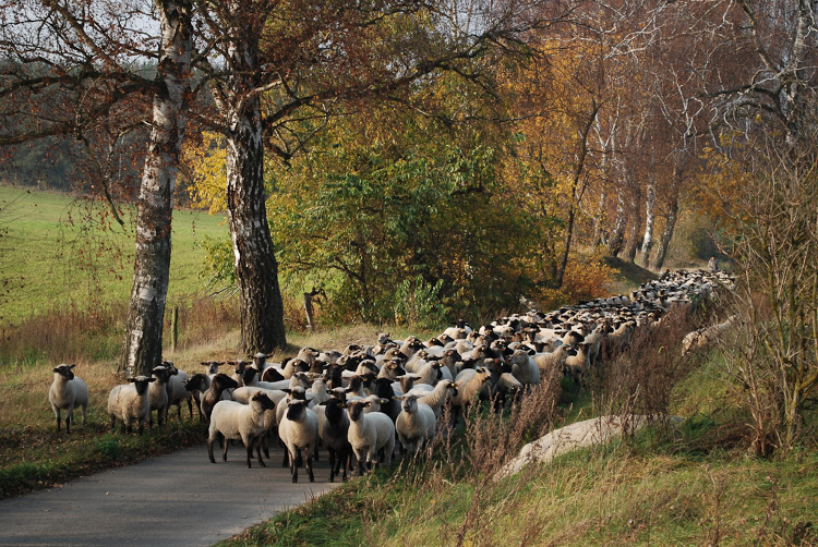 Schafherde auf dem Weg durch Zempow, fotografiert von Wilhelm Schäkel